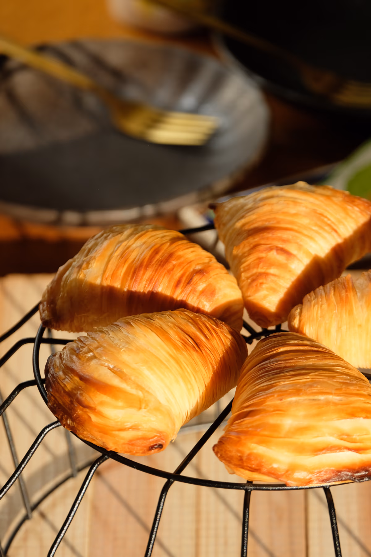 何度も試作を重ねながら、生地作りの技術を習得し、また、生地の原材料や厚み、焼成温度および焼成時間を試行錯誤することで、独特のパリパリ食感と香り高い風味を実現しました。